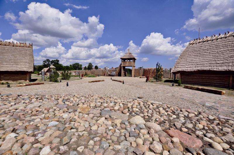 Faktoria Handlowa, w skład której chodzą: Chata Wodza – ekspozycja muzealna, Hala Targowa – miejsce spotkań z żywą archeologią oraz rekonstrukcje Chaty Bursztyniarza i Chaty Kowala, zostały pomyślane jako miejsce połączenia nowych technologii z bogactwem zabytków archeologicznych i pięknem bursztynowych eksponatów. Efektem tego przedsięwzięcia jest niezwykle interesujący obiekt, gdzie można zarówno odpocząć, jak i poznać tajniki życia sprzed niemal 2 tysięcy lat.