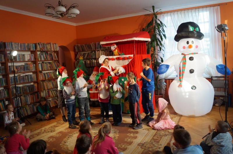 Milusińscy obejrzeli przedstawienie w wykonaniu, uwielbianego i znanego małym czytelnikom, Teatru Qfer. Na zakończenie spotkania bibliotekę odwiedził Mikołaj, by tym najgrzeczniejszym, czyli wszystkim małym gościom, wręczyć prezenty.